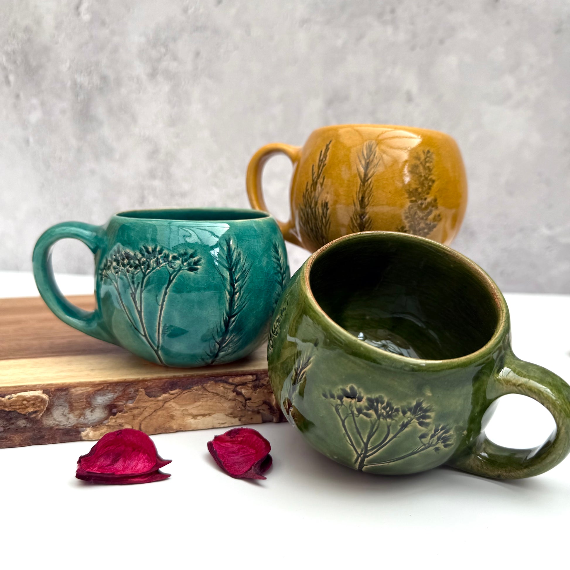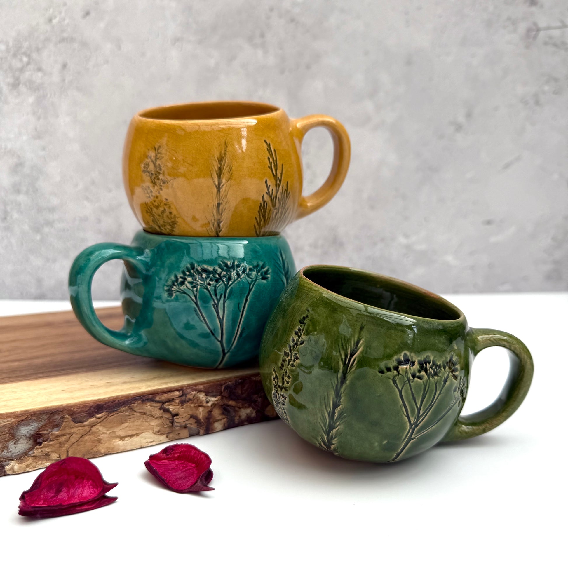 ✔️ If the dishes are made from a print of a plant or flower, the product is engobed and then glazed for the clarity of the drawing.